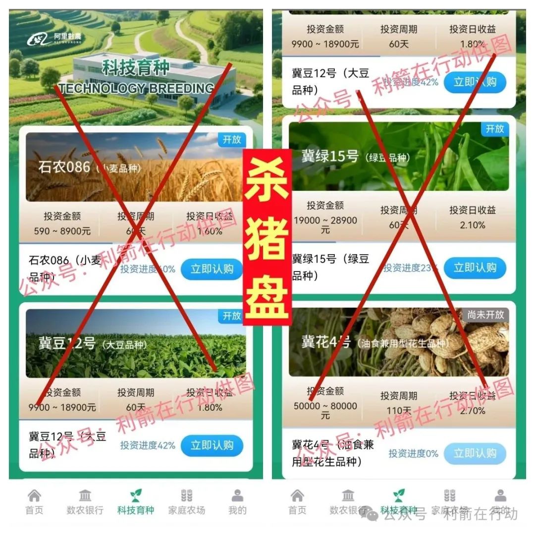 “科技育种” 项目:投资金额从几百元到几万元不等,宣称 “金额越大,固定收益越高”,但投资周期也随之延长(60 天至 110 天)。这种 “高收益、长周期” 的设定,正是骗子为拖延时间、诱导加大投入而设的圈套。