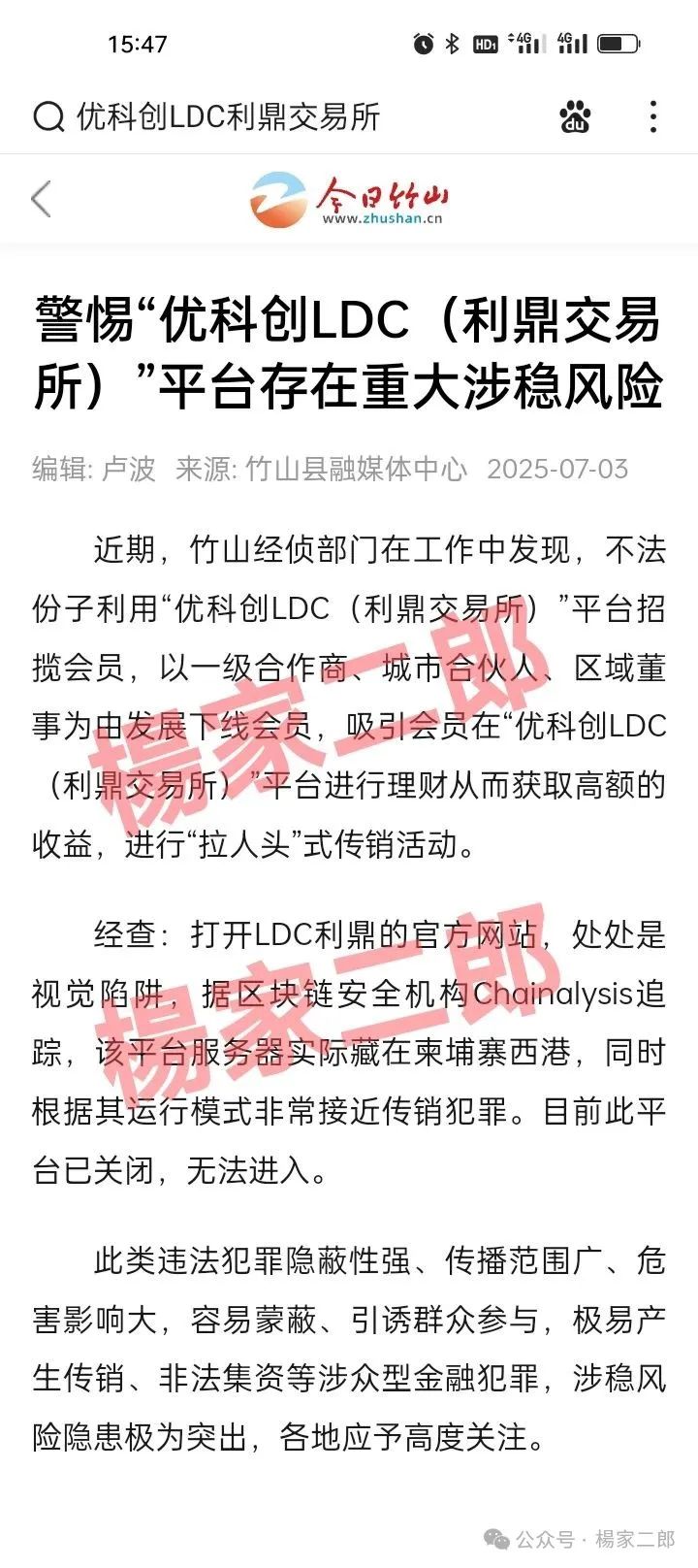 优科创LDC利鼎交易所是一个典型的跟单资金盘骗局,据粉丝透漏去年10月左右上线,今年被多地官方预警,于7月份大量单割团队及个人后 平移XM交易所继续收割,以下是其详细资料及现状: