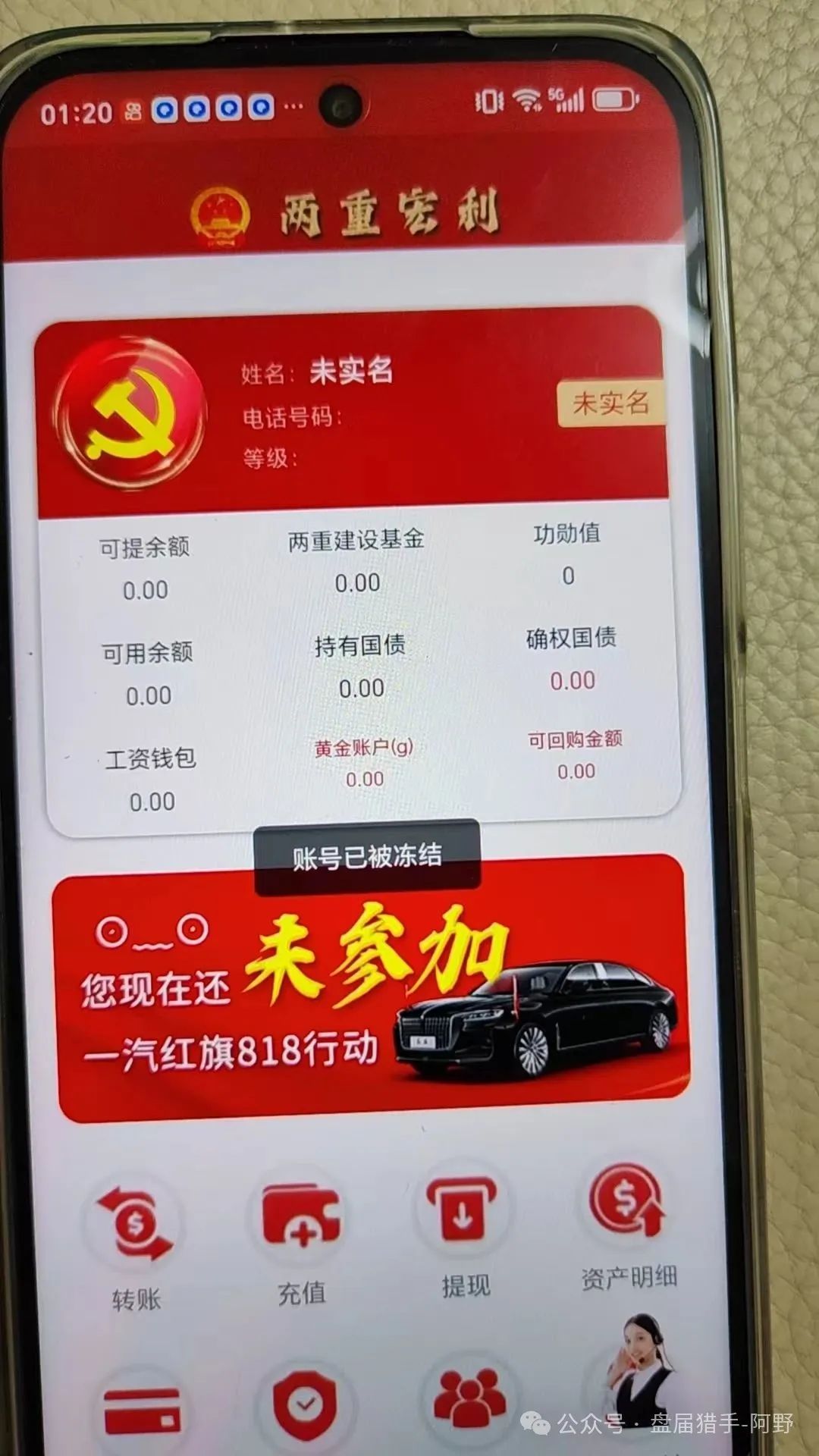 他们搞的 “两重宏利” 平台,党旗、国徽乱贴,假装 “国家项目”!承诺车子、黄金、福利补贴,全是钓你上钩的诱饵。备案号查无实据,平台链接(服务器地址106.75.2.209 )说关就关,钱投进去就别想提现,典型的 “杀猪盘”—— 先喂点 “甜头”,再连本带利吞光你的钱包!