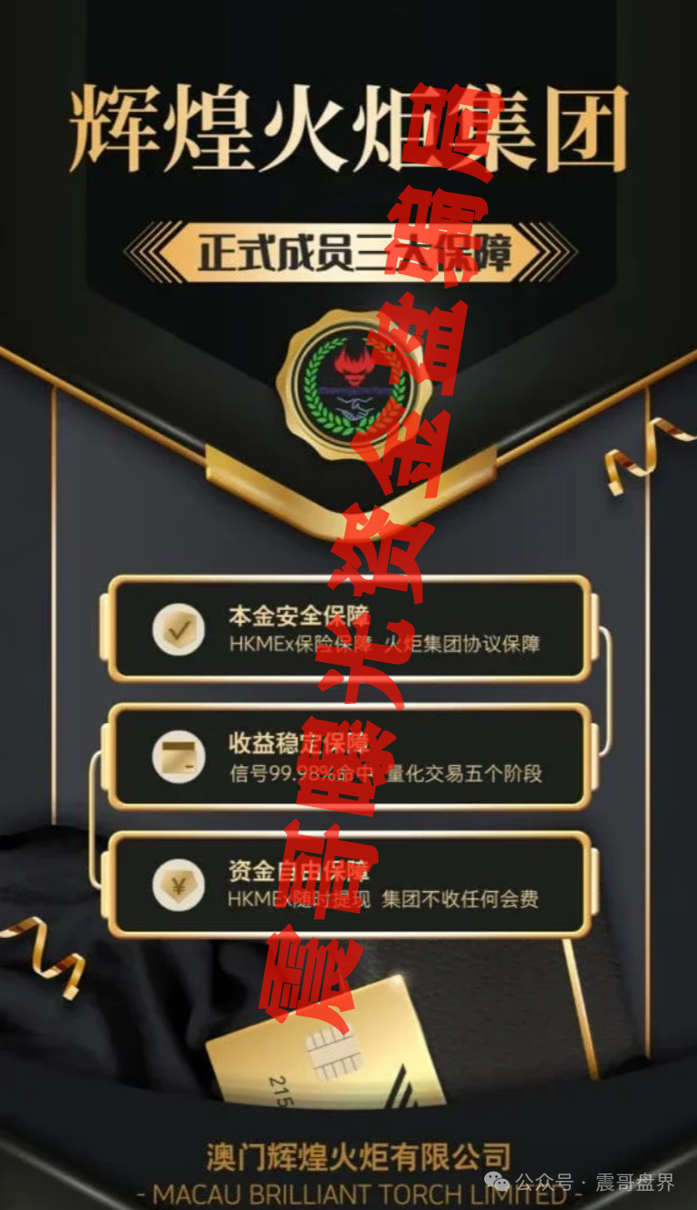 这破项目名字听着挺唬人吧?还澳门辉煌火炬,震哥一查就乐了——澳门金管局压根没这号玩意儿!那帮搞传销的连交易所资质都敢PS,朋友圈豪车豪宅全是盗图,就这水平还敢装金融精英?