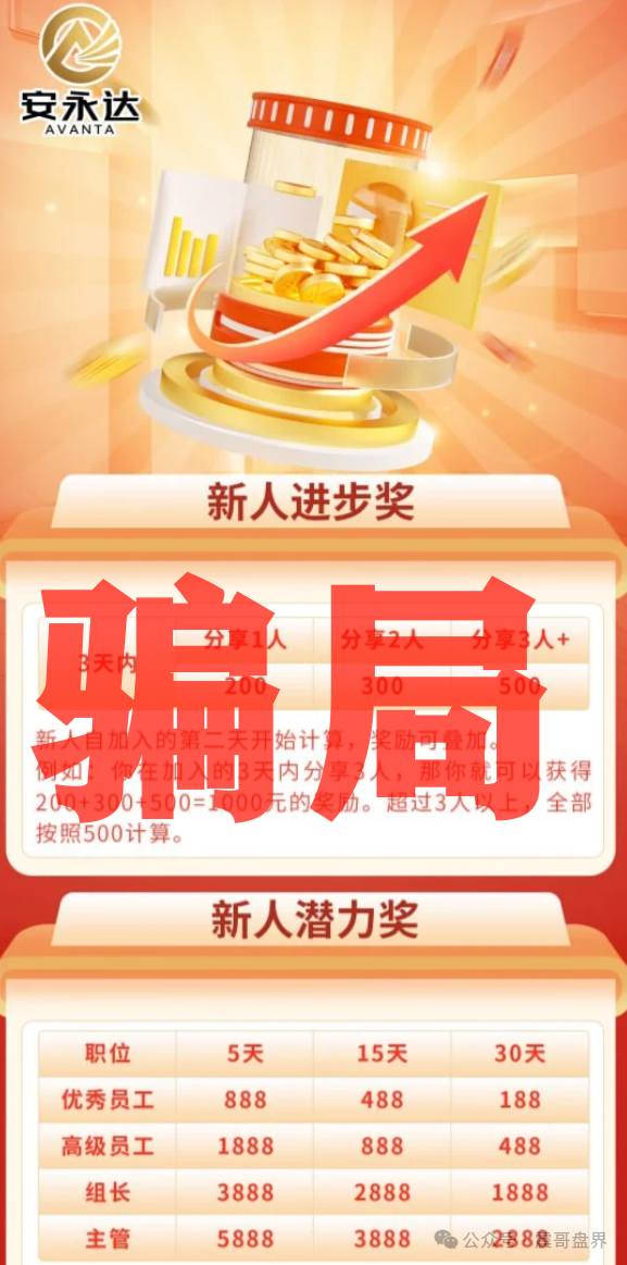 震哥把话放这儿:这绝对是个快枪盘,撑死活不过两个月。那帮人就是专门割韭菜的,上次骗完人钱还没捂热乎呢,现在又出来兴风作浪。大家千万别上当,看见永安达这三个字赶紧绕道走!记住啊,天上不会掉馅饼,真有这种稳赚不赔的好事,他们早闷声发大财去了,哪会到处拉人头?