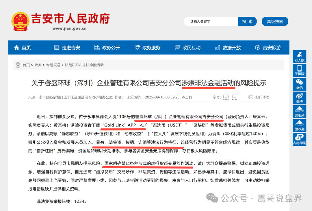 跟你们说,这项目跟去年暴雷的华英会一个套路,都是柬埔寨那边搞出来的资金盘。吉安市政府都发通告了,说它涉嫌非法金融活动,懂行的都知道,官方一通报基本就离崩盘不远了。