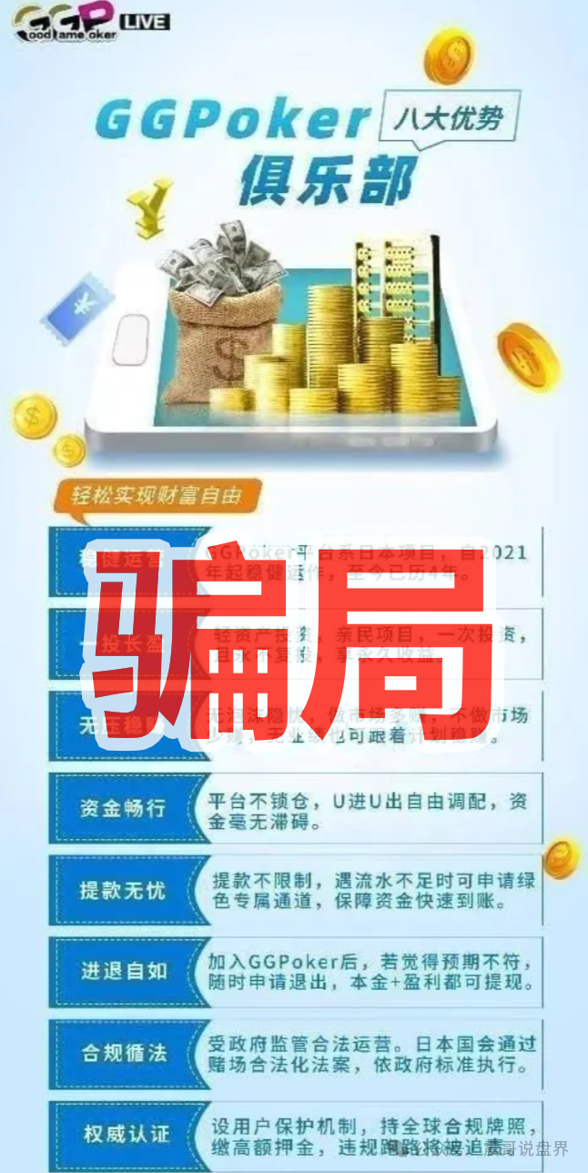 家人们注意了!最近震哥收到好多粉丝私信,都在说这个GGPoker俱乐部彩票的坑人把戏。这帮骗子顶着正规公司的名头,吹什么"稳赚不赔"“永久收益”,其实就是个快崩盘的资金盘!