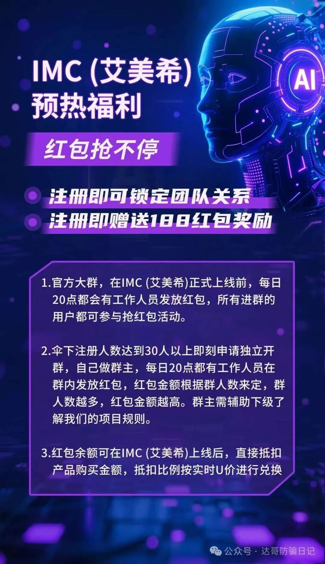 预警提醒【IMC(艾美希)】资金盘明日上线,目测应该比较短命,不建议参与,看到请远离!