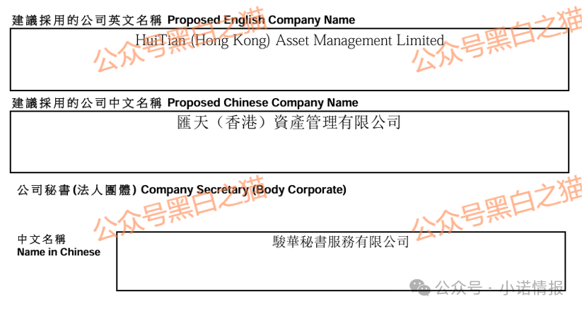 汇天(香港)资产管理有限公司,成立2025.4.8,创始人及董事为詹某,陕西省商洛市洛南县某社区人士,身份识别用的护照号码。