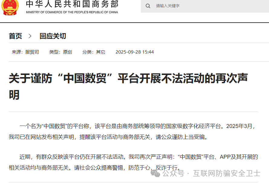 7. 虚构 “中国数贸” APP:商务部两度声明打假