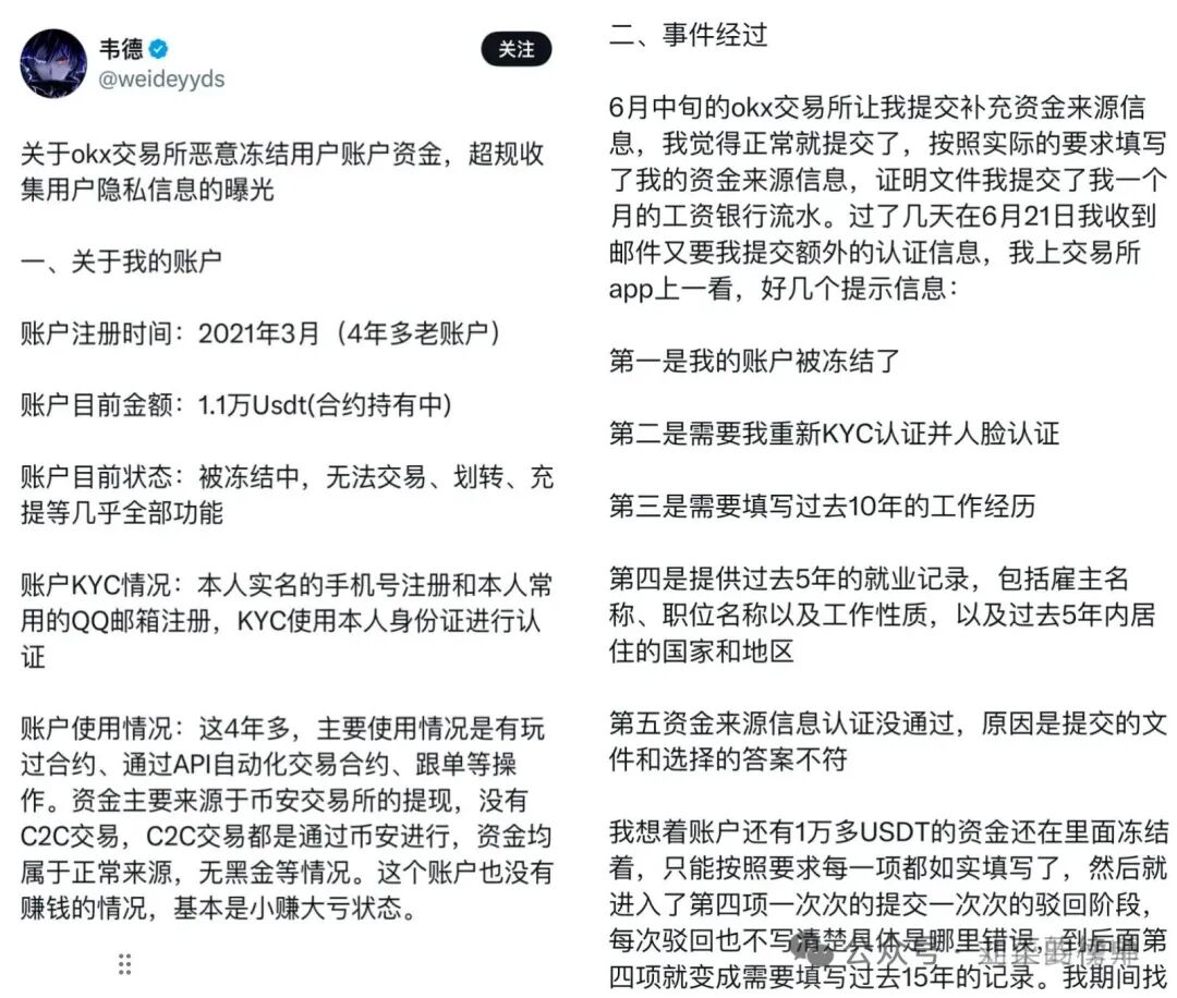 而OTC那些日流水几千万的币商,全部都是从okx买了币提到币安上去C2C卖掉。从早年小交易所卷款跑路,到FTX挪用百亿用户资产,再到无数平台拿风控合规当幌子冻资产,杨秀春这事从来都不是个例,只是她的筹码更大,摔得更惨而已。