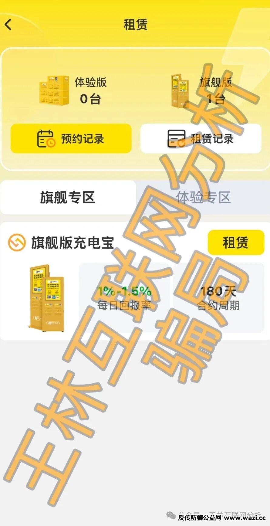 又一个分红类资金盘骗局,旗舰版充电宝每台仅300U,180天周期里每日1%-1.5%,赠送900租赁值,拉人头的奖励制度直推奖励2%-20%,还有第一代15%、第二代5%、第三代3%的代数奖励,设置L1-L7的层级团队业绩,达标可以拿10%-70%的团队奖励,这属于典型的传销模式,高度预警,典型的杀猪盘,大家看见一定要远离...