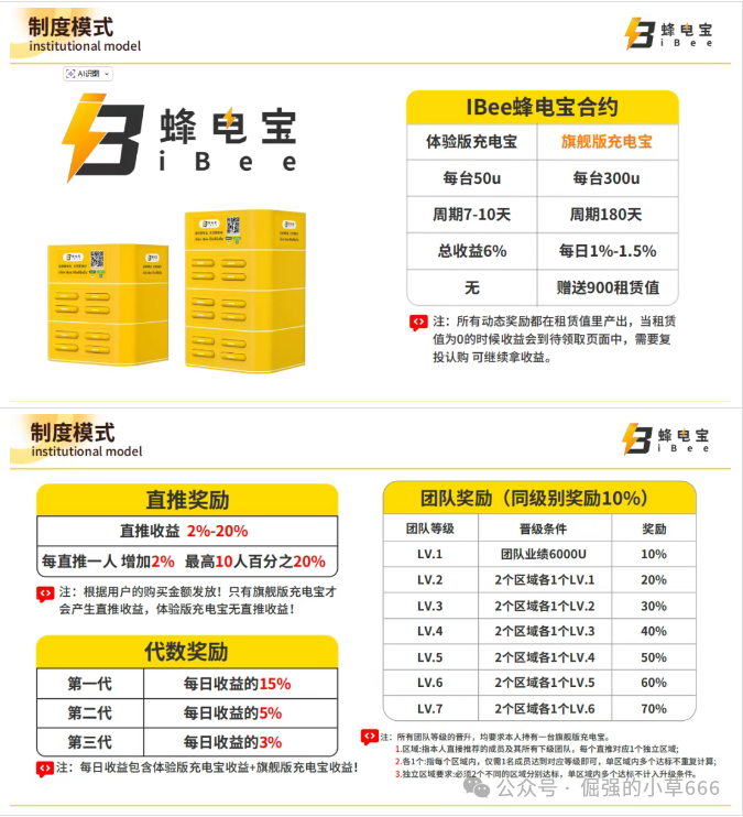 而IBEE蜂电宝的收益模式,则完全脱离了实体经济的范畴,每一条都精准踩在资金盘的红线上: